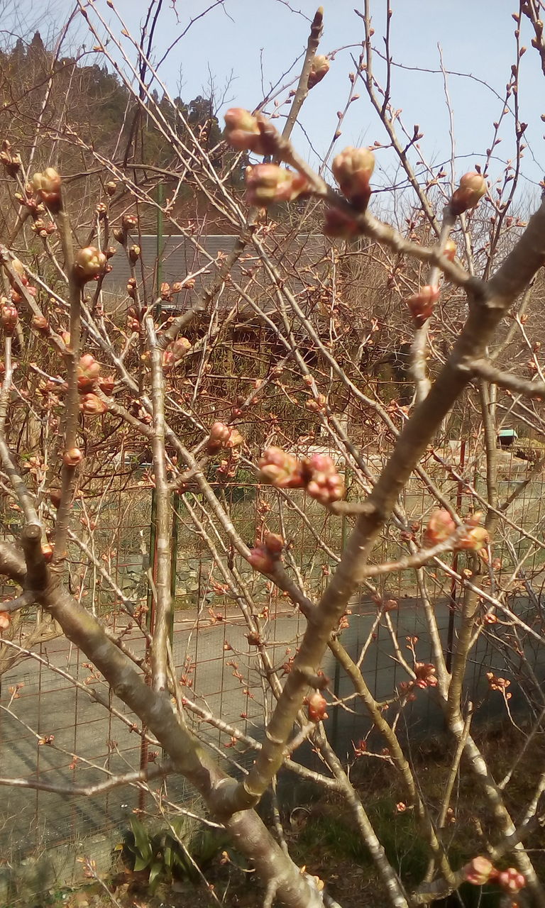 二週間前には硬かったつぼみのサクランボの木も 開花!